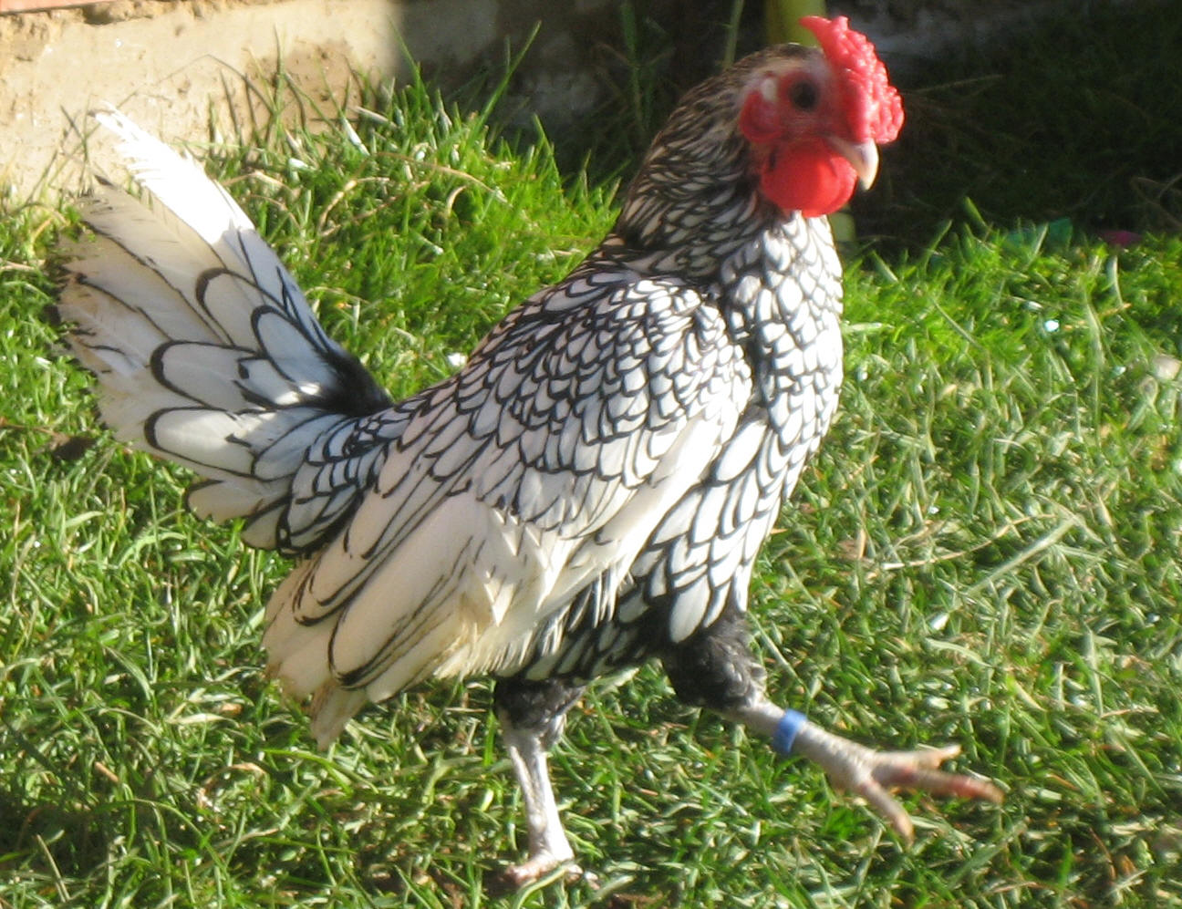 Carácter: Es una raza pequeña, nerviosa, vivaz, de andar fiero, porte alto y contorno redondeado. Un fino ribete negro bordea cada una de sus plumas. Ausencia de los caracteres sexuales secundarios en el gallo, tiene el plumaje de la gallina y por lo tanto no posee esclavina, caireles, ni hoces en la cola.
